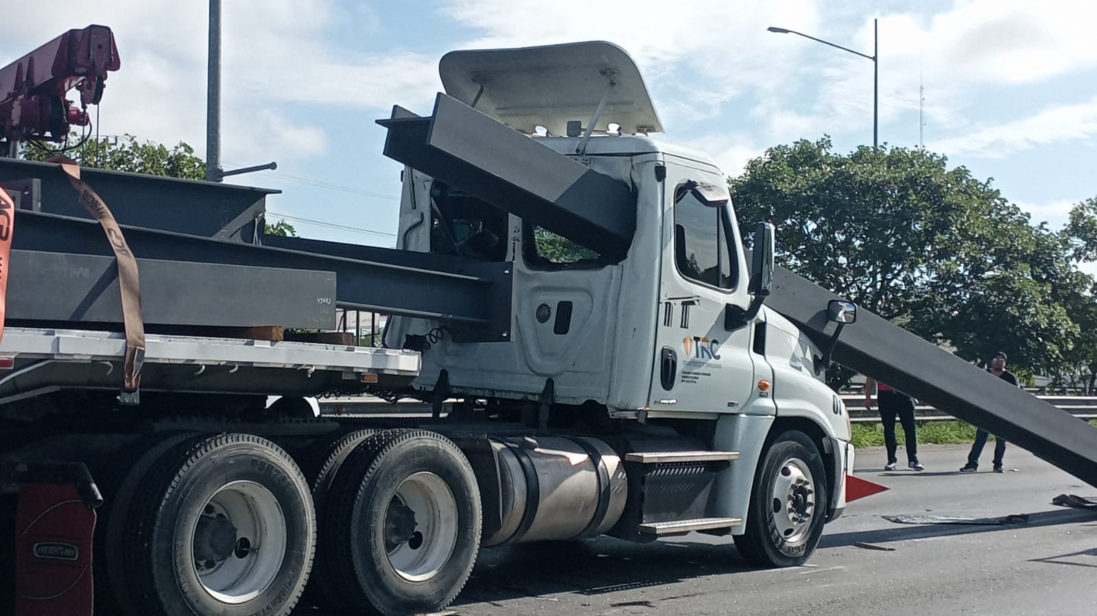 Fue ahí donde una de las enormes vigas metálicas no se detuvo y siguió la inercia que llevaba saliendo disparada hacia adelante para atravesar completamente la cabina del conductor, quien por fortuna estaba sentado a unos centímetros de donde pasó, evitando así una lesión que posiblemente hubiera ocasionado su muerte.