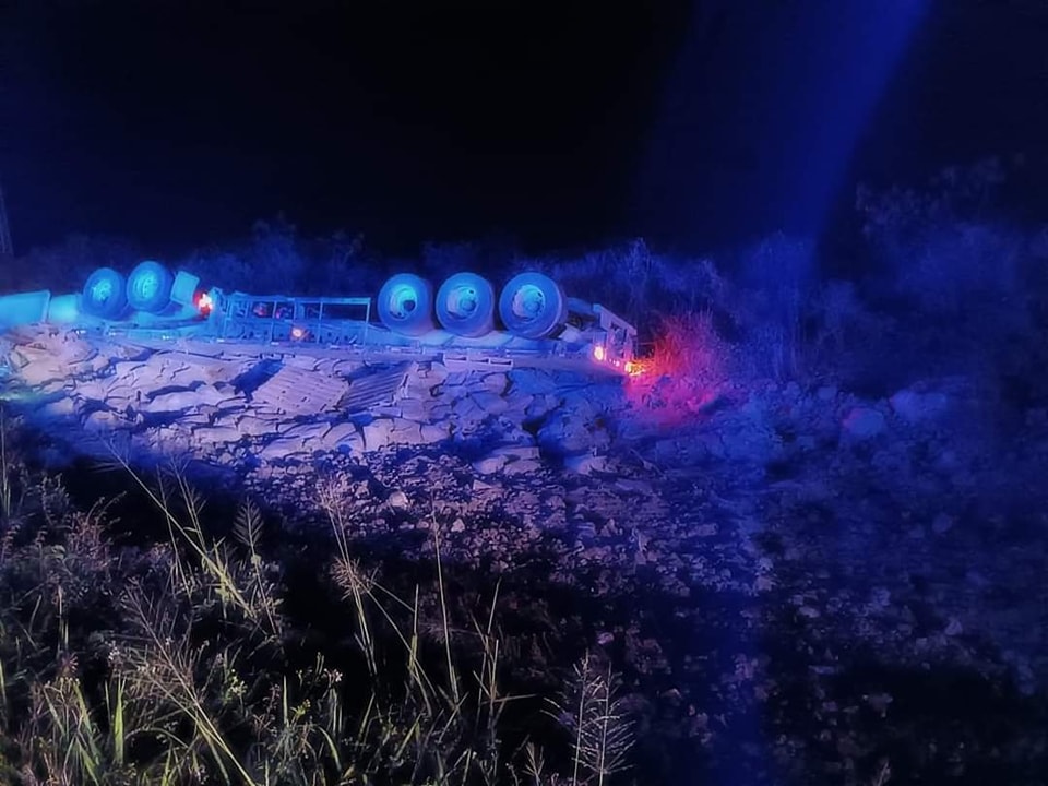 Esto genero que se saliera del camino y por el gran peso que llevaba de la carga se volcó completamente hasta quedar de cabeza.