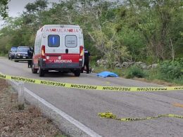 Mérida, Yuc. (17 de noviembre de 2023).- El conductor de un tráiler cargado con sacos de cemento murió aplastado en la cabina al sufrir una volcadura en la carretera federal Mérida-Cancún.