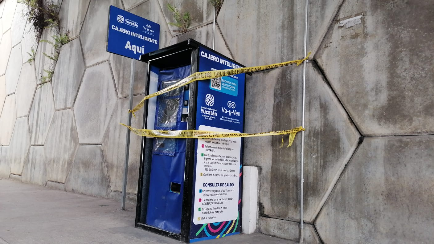 Mérida, Yuc. (21 de noviembre de 2023).- Una vez más el cajero del transporte público Va y Ven ubicado bajo el puente del Periférico y el entronque a la comisaría de Chichí Suárez amaneció destruido.