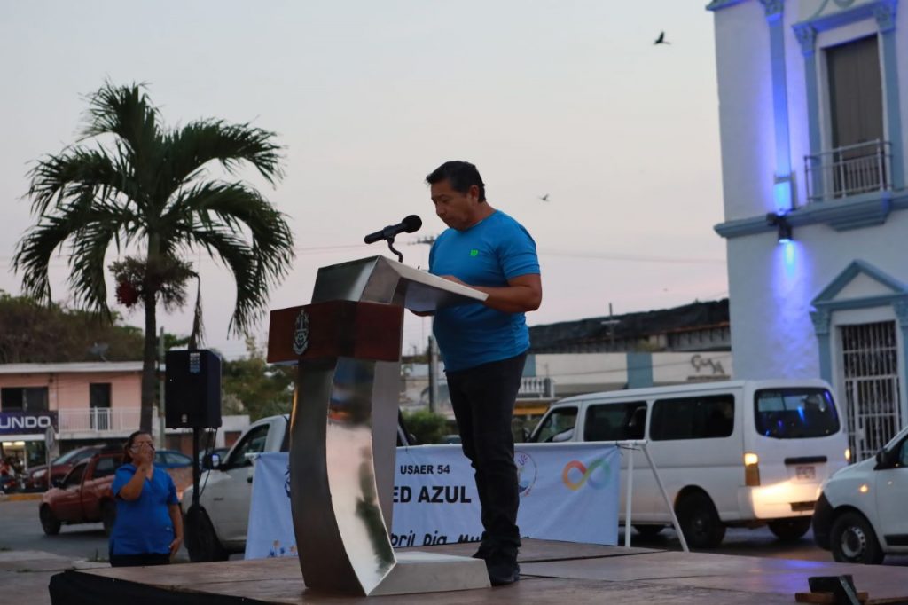Realizada en el parque Independencia, el alcalde interino Roger Gómez Ortegón, acompañado por la sindico Patricia Rosado, así como regidores y la titular de Educación, Dianela Núñez, resaltó que la actual administración continuará trabajando con la USAER 54 para impulsar la Red Azul, la cual ha sido de gran ayuda para los padres que tienen hijos con autismo, también conocido como Trastorno del Espectro Autista (TEA).
