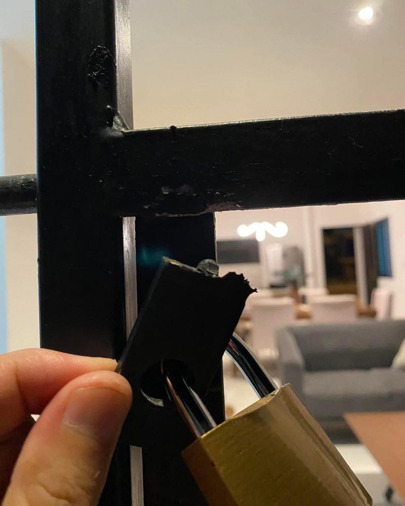“Revisen bien sus protectores, por como entraron es alguien que ya sabe como abrir este tipo de puertas. Tengan cuidado 😔, dijo uno de los afectados a quien le trozaron el soporte del candado como si nada.