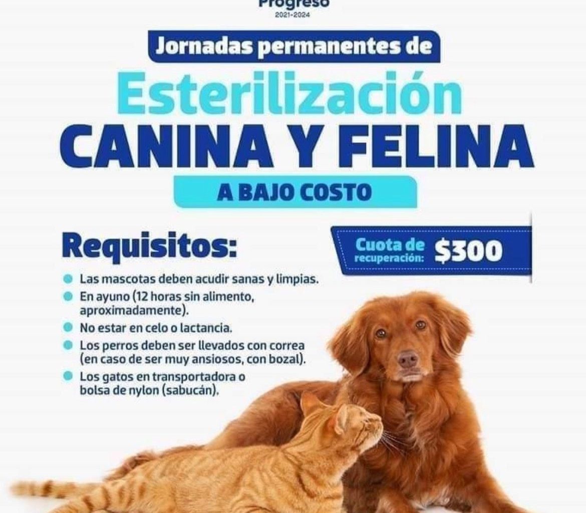 PROGRESO, Yuc., 14 de mayo de 2024. El alcalde Roger Gómez Ortegón hace una atenta invitación a aquellos dueños de mascotas a inscribir a sus gatitos o perritos a la Jornada de Esterilización Canina y Felina a Bajo Costo del 2024.