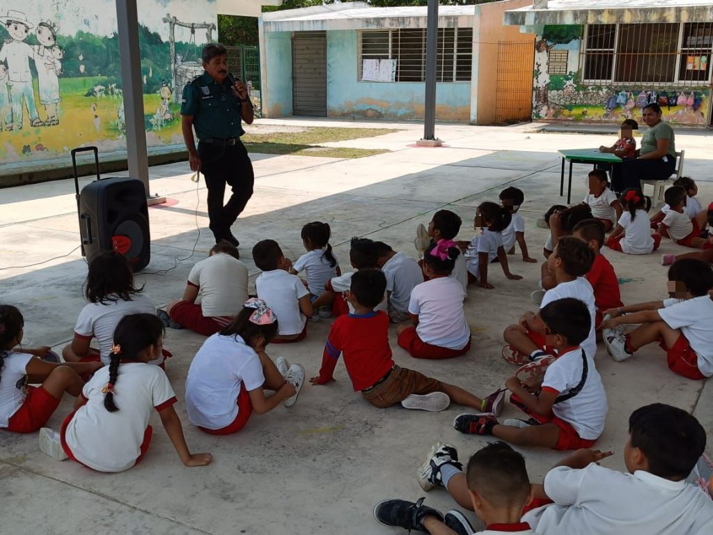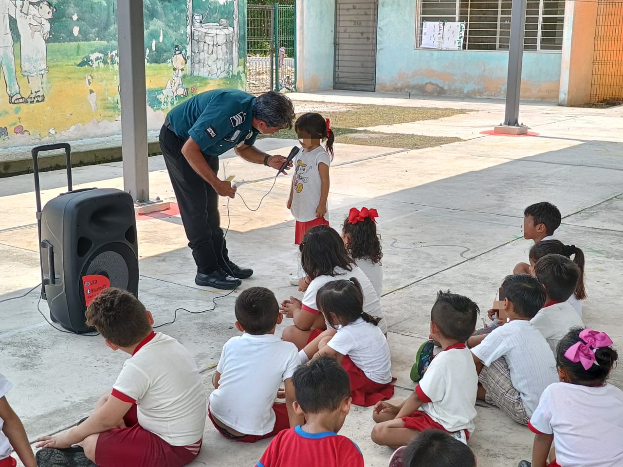 PROGRESO, Yuc., 21 de mayo de 2024.- Alumnos del jardín de niños “Romulo Rozo” recibieron recientemente a elementos de la Unidad de la Policía Ecológica de Progreso, quienes les platicaron sobre los cuidados hacia las mascotas, en especial de los perritos.