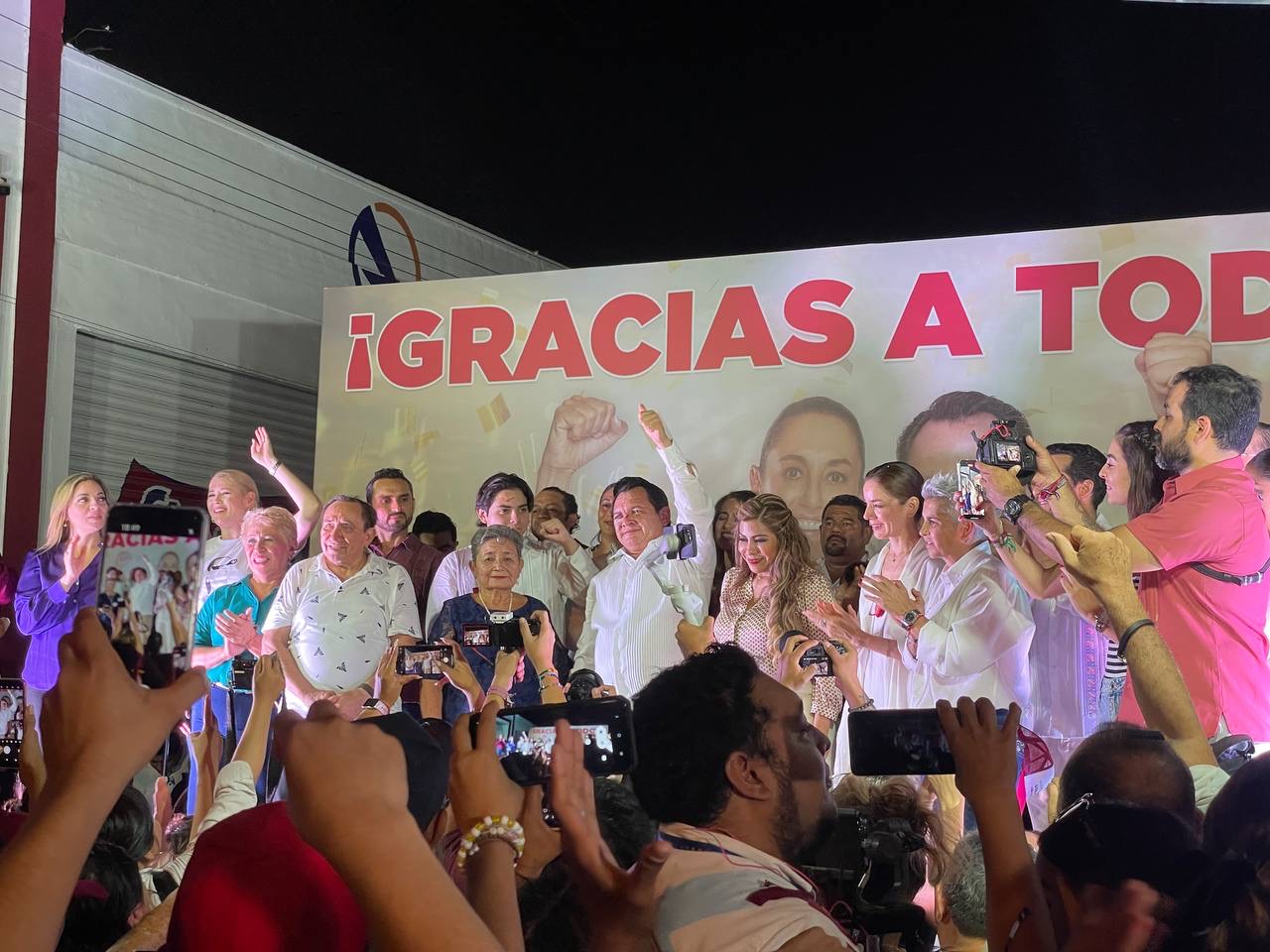 MÉRIDA, Yuc., Ante miles de personas que llegaron con horas de anticipación, el virtual gobernador electo, Joaquín “Huacho” Díaz Mena, festejó junto al pueblo la contundente victoria de la Cuarta Transformación en Yucatán.