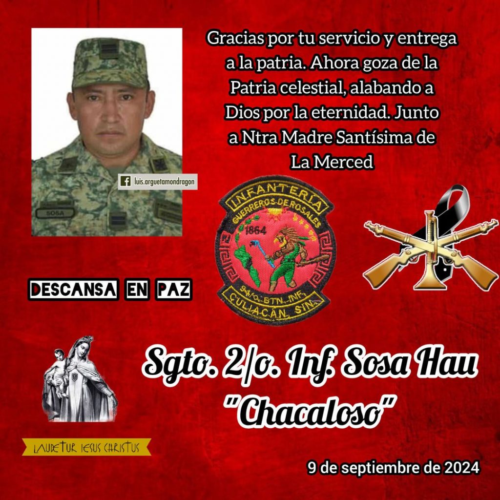 Mérida, Yuc., 10 de septiembre de 2024.- El militar fallecido el lunes pasado durante un enfrentamiento en Culiacán, Sinaloa, entre el Ejército y miembros del crimen organizado era un sargento originario de Izamal, Yucatán.