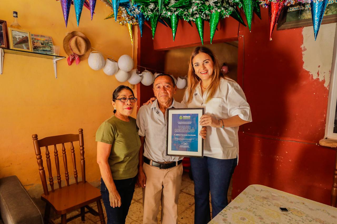 La Alcaldesa visitó al héroe de quien destacó su valentía y solidaridad al ayudar a quien más lo necesitaba en ese momento, “hoy, gracias a sus acciones una madre y su niño están con vida, evitando una tragedia, pero sobre todo demostrando con su ejemplo lo que significa ser un meridano con valor y digno de reconocimiento”, indicó Cecilia Patrón .