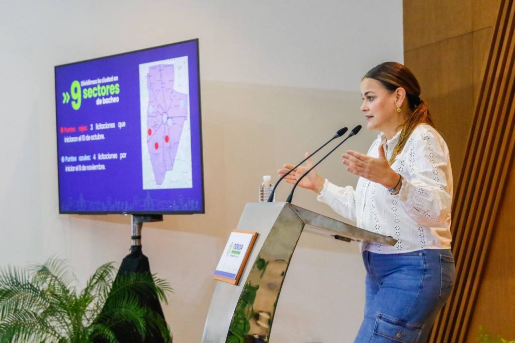 Cecilia recordó que la meta de los primeros 100 días de su administración municipal es atender 105 mil metros cuadrados de baches, de los cuales, 60 mil metros cuadrados están a cargo de las cuadrillas de bacheo del Ayuntamiento y 45 mil de empresas contratadas mediante licitaciones aprobadas por el Cabildo.
