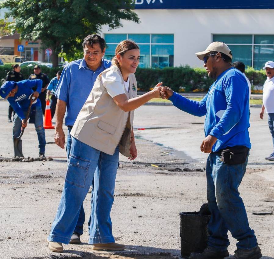 Cecilia Patrón supervisa y dirige acciones de bacheo en colonias de Mérida