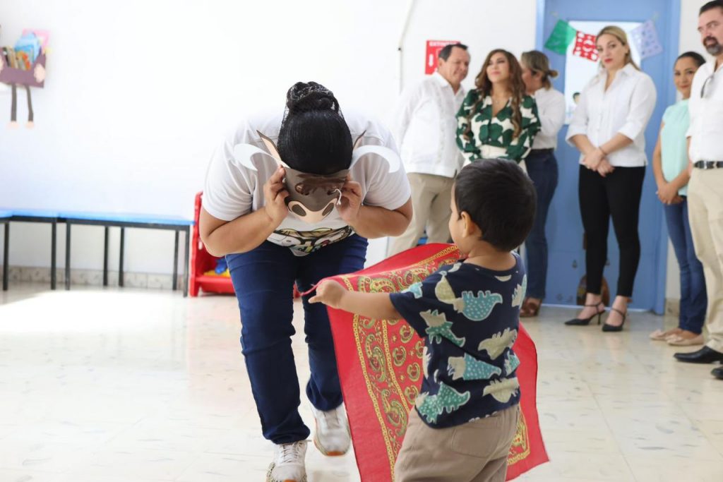 Acompañados de la directora del CADI, Miriam Asunción Ortiz, el Gobernador recorrió el Centro donde convivió con los menores y presenció una serie de actividades que realizan para desde pequeños ir conociendo las tradiciones y cultura de Yucatán.