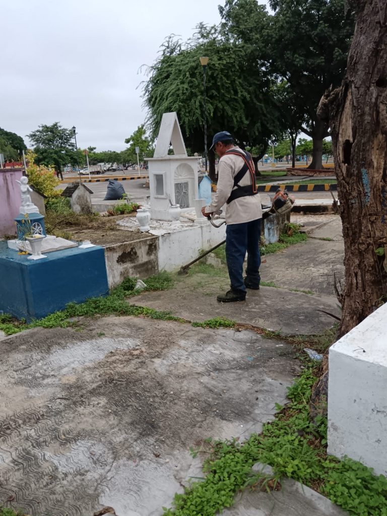 En los cementerios General, Florido y Jardines de la Paz se llevaron a cabo trabajos de limpieza general, de pasillos de los andadores, pintura de banquetas, guarniciones y fachadas, poda de árboles, retiro de escombros, fumigación y abatización, para que las familias visiten a sus difuntos en un ambiente libre de moscos y maleza.