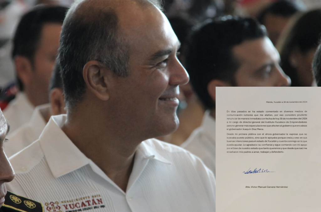 Mérida, Yuc., 30 de noviembre de 2024.- Víctor Cervera Hernández reveló a través de sus redes sociales que renunció a la dirección del Instituto Yucateco de Emprendedores, luego de los recientes rumores de un enfrentamiento con el Coordinador General de Asesores del gobierno estatal, Dafne López Martínez.