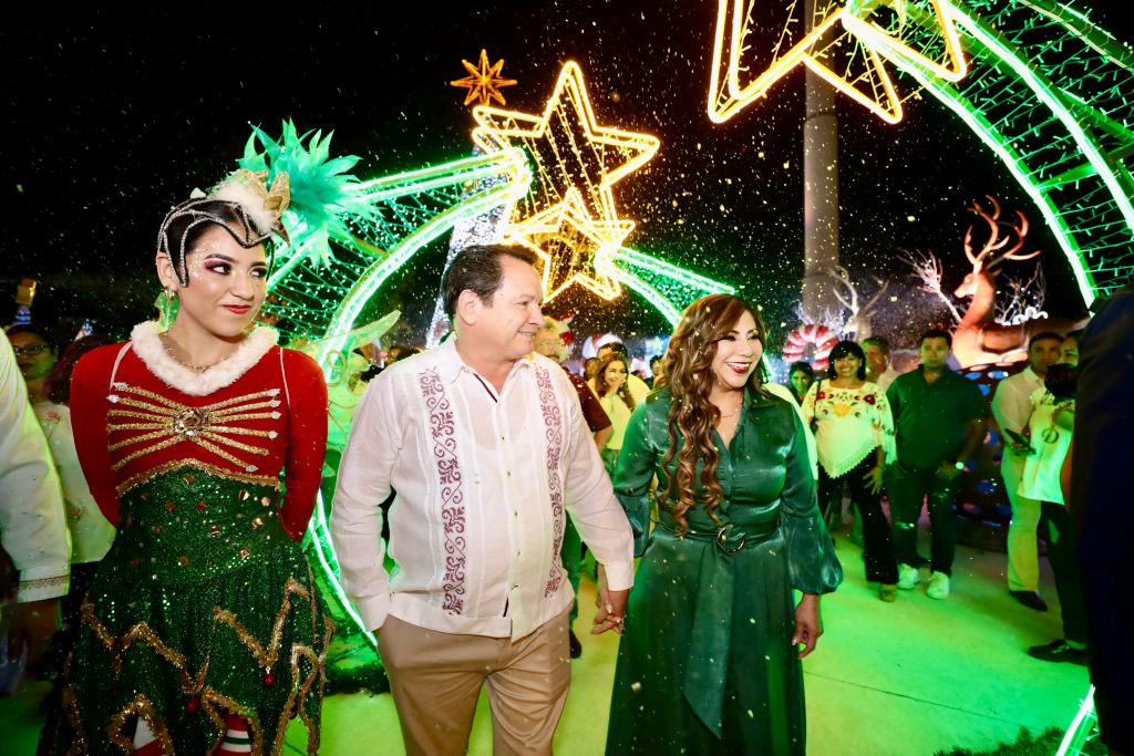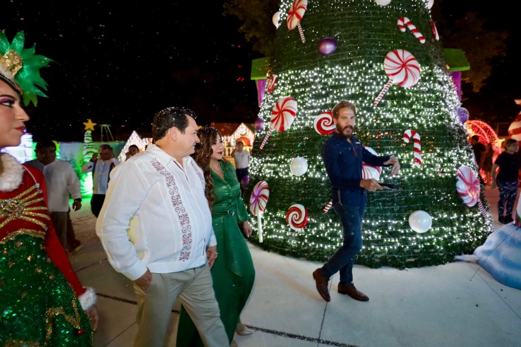 Mérida, Yuc., 9 de diciembre de 2024.- El Gobernador Joaquín Díaz Mena, junto a su esposa, y presidenta honoraria del Sistema para el Desarrollo Integral de la Familia (DIF) Yucatán, la maestra Wendy Méndez Naal, inauguró esta noche la Villa Navideña del Gobierno del Estado en el parque de La Plancha, con el propósito de ofrecer a las familias yucatecas un espectáculo que celebra la magia de la Navidad.