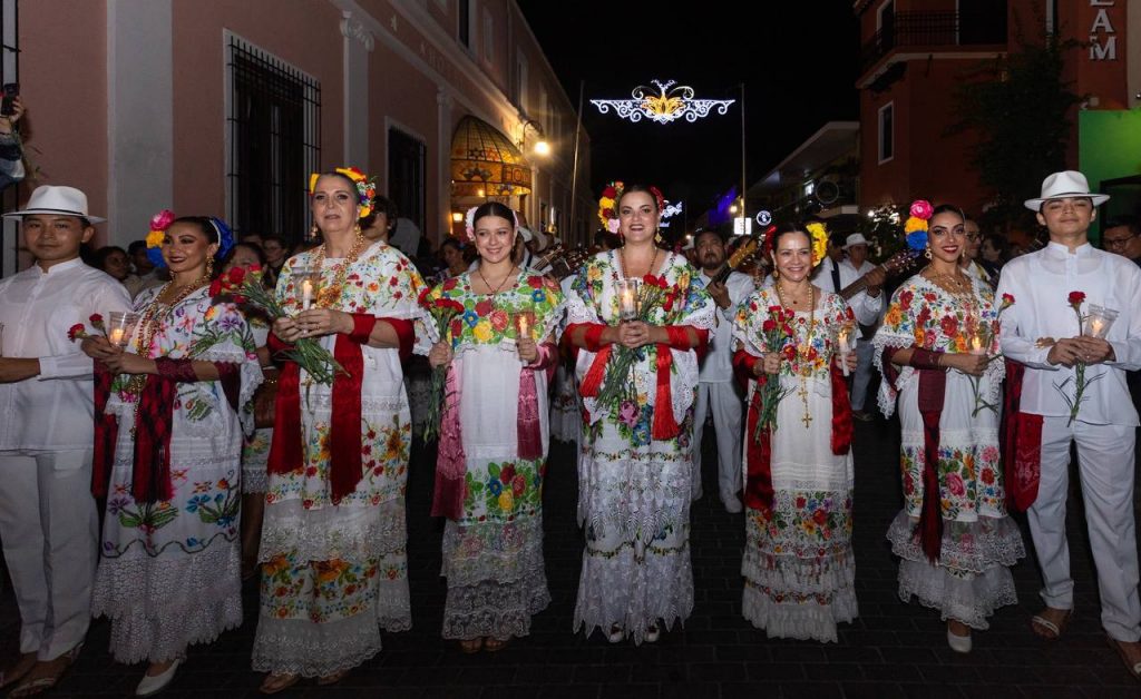 Durante el recorrido estuvo acompañada de su hija María Sofía, así como de numerosas familias meridanas y visitantes que disfrutaron de una noche mágica amenizada por decenas de trovadores de las asociaciones Pastor Cervera, Pepe Domínguez, Armando Manzanero y Guty Cárdenas, quienes deleitaron con sus voces el recorrido nocturno.