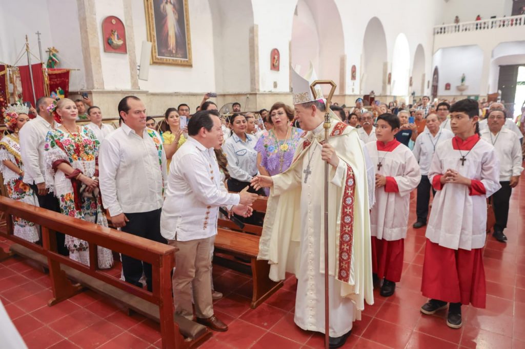 Tizimín, Yuc., 6 de enero de 2025.- El Gobernador Joaquín Díaz Mena acudió a la ceremonia religiosa en honor a los Tres Santos Reyes Magos, la cual fue oficiada en Tizimín por el arzobispo de Yucatán, Gustavo Rodríguez Vega.
