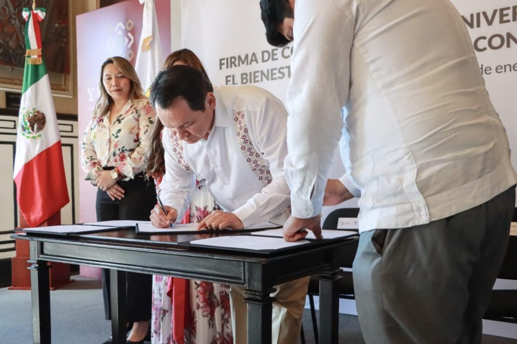 Mérida, Yuc., 15 de enero de 2025.- En Yucatán se marca un día histórico con la firma del Convenio para la Universalidad de la Pensión para el Bienestar de las Personas con Discapacidad Permanente, el cual fue signado este día por el Gobernador Joaquín Díaz Mena y el delegado estatal de Programas para el Desarrollo de Yucatán, Rogerio Castro Vázquez. Así, se reafirma el compromiso de esta administración de construir un estado más justo, humano e incluyente.