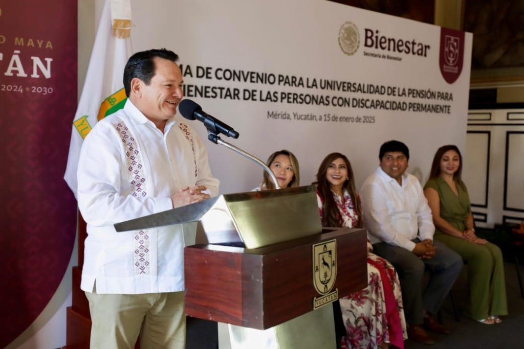 “La Pensión para el Bienestar de las Personas con Discapacidad Permanente es una declaración de principios que representa la convicción de que nadie debe quedar atrás ni ser excluido de las oportunidades de desarrollo. En colaboración con la Secretaría de Bienestar, hemos logrado materializar un derecho consagrado en nuestra Constitución: el acceso universal a esta pensión”, enfatizó el Gobernador, en presencia de su esposa y testigo de honor de esta firma, la Presidenta Honoraria del Sistema para el Desarrollo Integral de la Familia (DIF) de Yucatán, la maestra Wendy Méndez Naal.