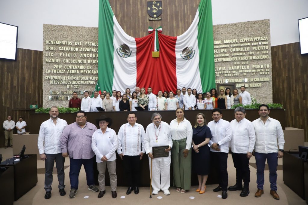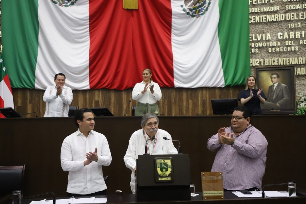 Al finalizar la intervención del diputado, la presidenta de la Mesa Directiva Claudia Estefanía Baeza Martínez impuso la Medalla “Héctor Victoria Aguilar” y entregó el diploma correspondiente al maestro Ariel Avilés Marín por parte del H. Congreso del Estado de Yucatán.