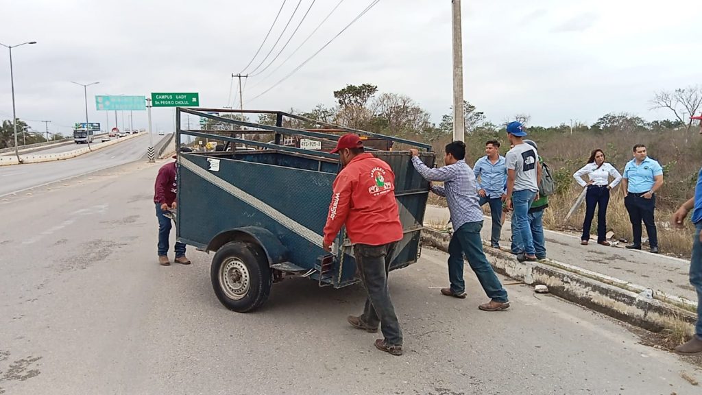 El incidente ocurrió la mañana de este viernes cuando unos caballerangos transitaban sobre la vía federal de oriente a poniente y a unos metros de subir el puente, conocido como puente de San Pedro Cholul, se le zafó el remolque de la camioneta que trasladaba al equino.