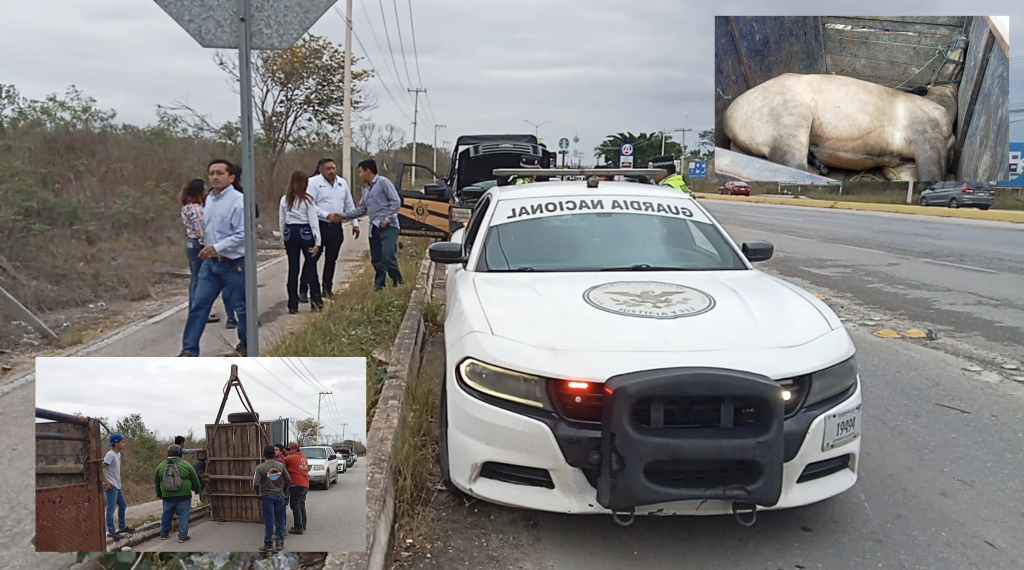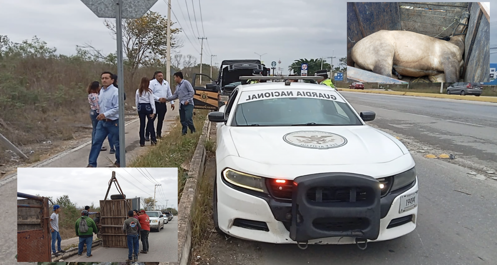 El incidente ocurrió la mañana de este viernes cuando unos caballerangos transitaban sobre la vía federal de oriente a poniente y a unos metros de subir el puente, conocido como puente de San Pedro Cholul, se le zafó el remolque de la camioneta que trasladaba al equino.