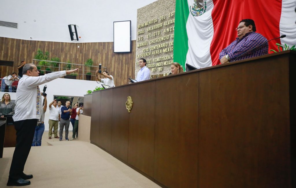 Al concluir con el proceso de votación y luego de conteo, se llevó a cabo la rendición de compromiso constitucional de José Jacinto Sosa Novelo, quien ocupará el cargo por cinco años.