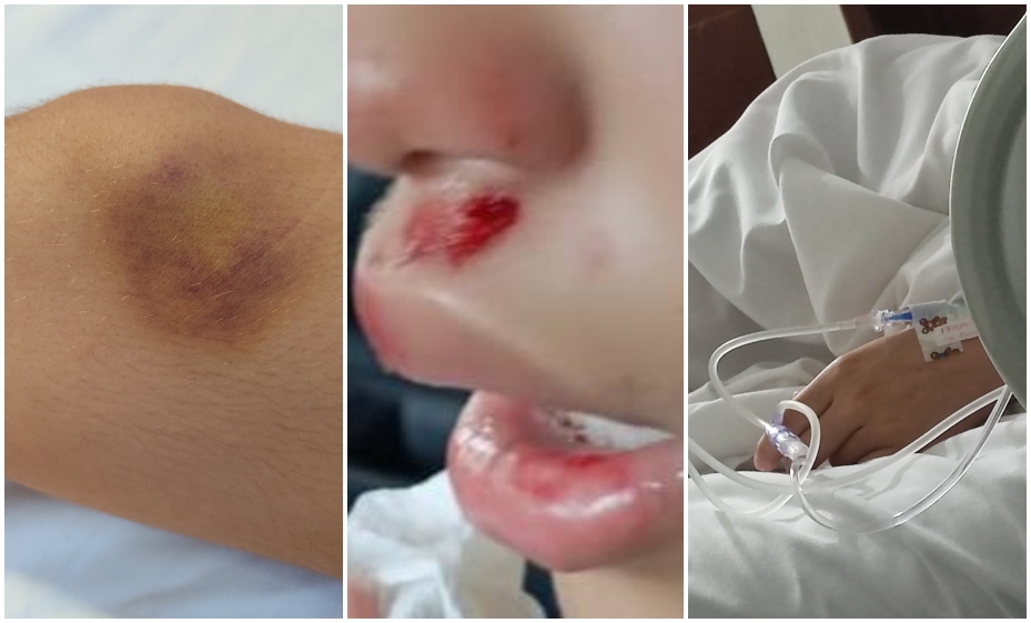 Relató que de las agresiones pasaron de las palabras a lo físico y la adolescente tuvo, “pequeñas hemorragias internas en el cerebro, dos dientes y boca rota, golpe en la frente con sangrado, golpe y raspón cerca del ojo, golpe en la nariz y con eso sangrado abundante de ella, brazo derecho y ambas rodillas con golpes y raspones, por lo que tuvo que ser ingresada en una clínica durante dos días para observación”.