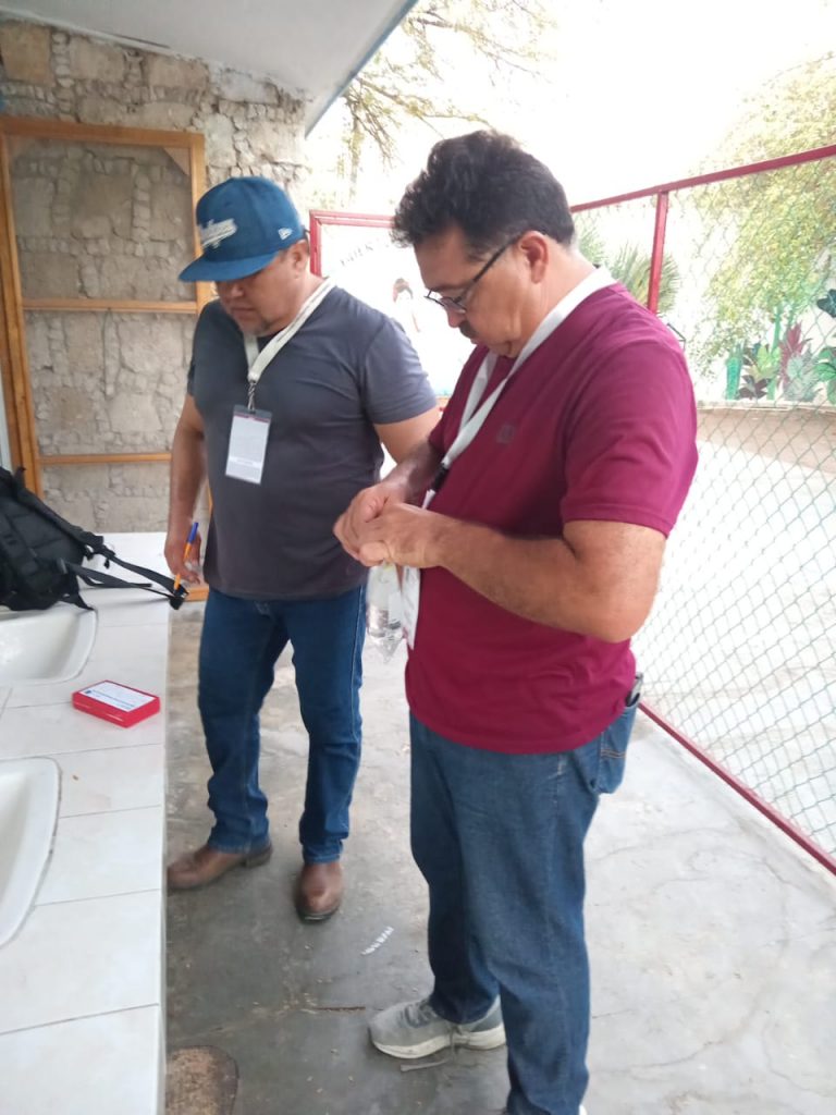 Como parte de la respuesta inmediata, realizó la toma de muestras de alimentos, jugos, agua potable y de las tomas de agua del plantel. También supervisó sanitariamente a las personas encargadas de preparar los alimentos y distribuyeron 50 folletos con información preventiva, así como 50 sobres de Vida Suero Oral y medicamentos del esquema básico preventivo.