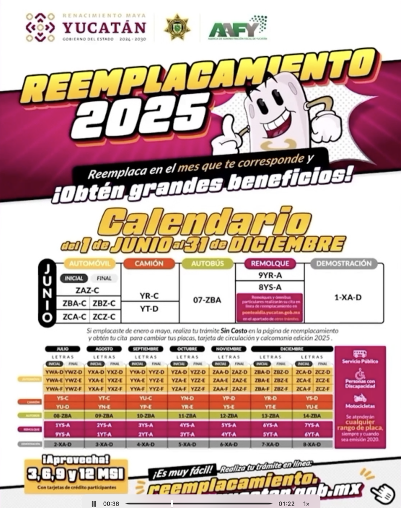 Mérida, Yucatán, a 27 de mayo de 2025.- El Gobernador de Yucatán, Joaquín Díaz Mena, anunció el inicio de la Segunda Etapa del Reemplacamiento 2025, una estrategia que, además de brindar apoyo directo a la economía de las familias yucatecas, fortalece el orden y la seguridad vial en el estado.
