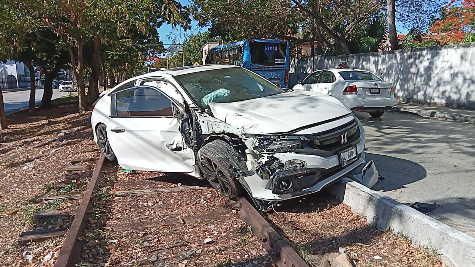 El incidente ocurrió cuando el conductor de un vehículo Honda Civic iba transitaba sobre la avenida Tecnológico y al pasar por calles de Chuburná, entre el cruce 23 y 25, el Honda se pegó demasiado a la unidad del Va y Ven y se impactó en la parte trasera izquierda.