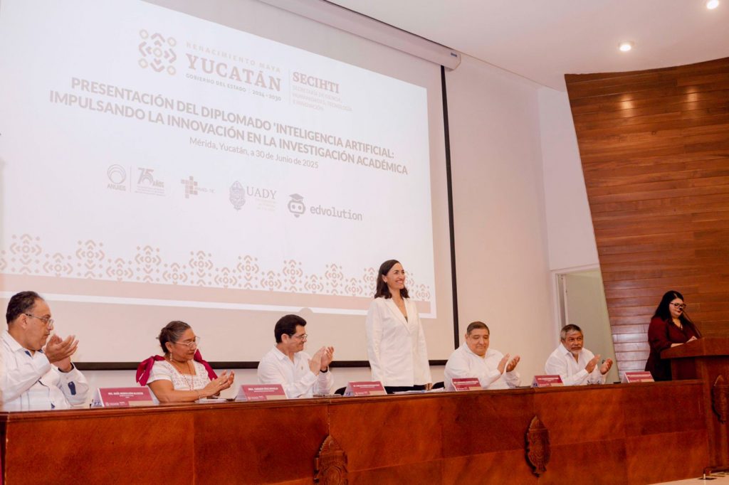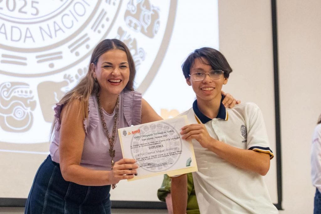 Mérida, Yucatán, 1 de julio de 2025.- La presidenta municipal, Cecilia Patrón Laviada asistió a la Ceremonia de Premiación de Ganadores de la Fase Estatal de la Olimpiada Nacional de Física, donde felicitó a las y los jóvenes talentos que destacaron en esta competencia.
