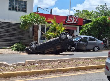 Mérida, Yucatán, 7 de junio de 2025.- Un vehículo Chevy estacionado acabó con las llantas para arriba al…
