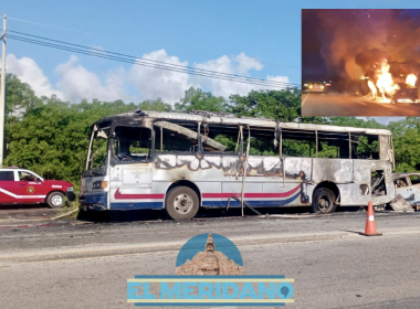 Muere joven calcinado al chocar contra autobús en la carretera Mérida-Motúl