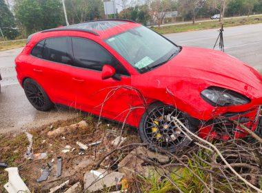 Choca lujosa Porsche y una camioneta en el entronque de Conkal