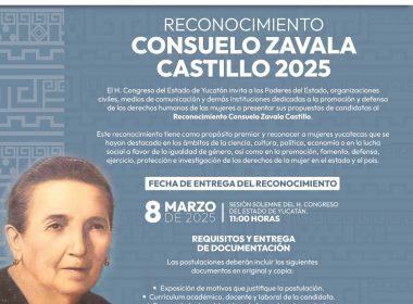 Congreso de Yucatán abre convocatoria para reconocimiento Consuelo Zavala